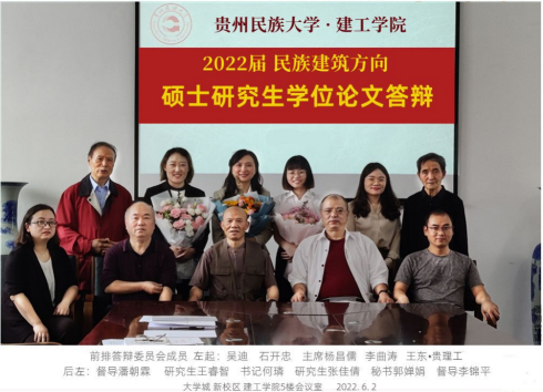 2022年6月2日上午9点,我院2019级民族学专业民族建筑方向硕士研究生论文答辩会在437必赢会员中心A504举行。本次论文答辩主席为437必赢会员中心民族学与历史学学院杨昌儒教授,答辩委员包括437必赢会员中心民族学与历史学学院石开忠教授、贵州理工学院建筑与城市规划学院王东副教授、437必赢会员中心李曲涛教授及吴迪副教授,校教学督导潘朝霖老师、李锦平老师以及437必赢会员中心何璘书记、答辩秘书郭婵娟老师均参加了本次会议,民族建筑方向低年级研究生们旁听学习。