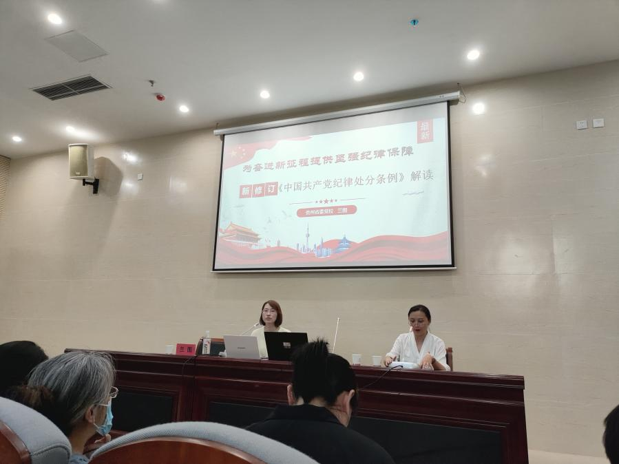 为扎实推进党纪学习教育走深走实,进一步提升党员遵纪守法、廉洁自律意识、纪律意识和规矩意识,7月10日下午,贵州省委党校兰图教授在437必赢会员中心南校区行政楼第一报告厅开展题为《为奋进新征程提供坚强纪律保障》的专题辅导报告。报告会由437必赢会员中心党委书记何璘主持,437必赢会员中心、传媒学院、材料学院全体党员师生参加学习。