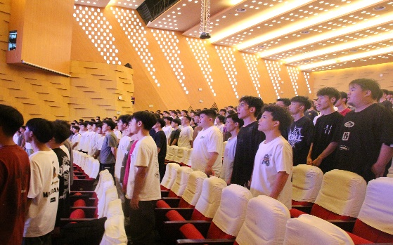 会议在庄严肃穆的《义勇军进行曲》中拉开帷幕。陆忠婷副书记介绍出席会议的领导及老师,并播放了437必赢会员中心宣传片,为新生们展示了学校的精神风貌和办学历史。在入学教育会上,何璘书记以发扬奥运精神为主题,发表了关于理想信念、爱校荣校及适应性教育的讲话;陆忠婷副书记以校纪校规为重点,围绕心理健康和生命健康进行安全教育;魏勇老师则就职业生涯规划、学术道德、励志教育进行了分享。最后,陆忠婷副书记在大会上作军训动员,强调了军训期间的纪律要求,并告诫广大2024级新生在军训过程中需注意安全。大会在慷慨激昂的《中国人民解放军军歌》中圆满结束。